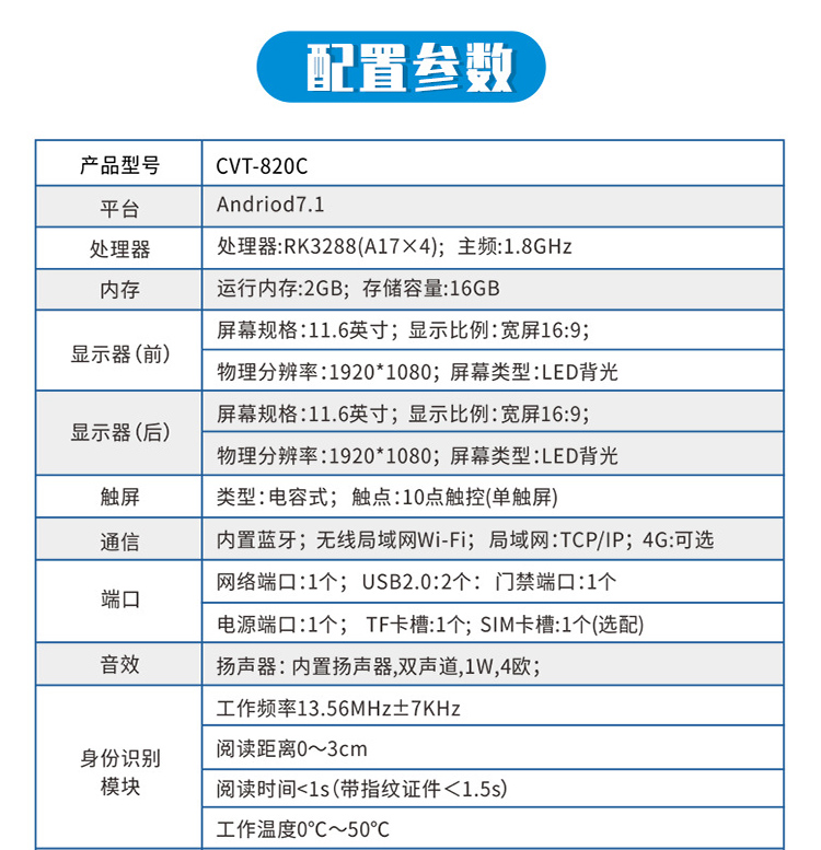 (*由于產(chǎn)品升級或其他原因,華視cvt-820c雙屏訪客機產(chǎn)品實際參數(shù)有可能變更,以實際產(chǎn)品為準。本文中的所有陳述、信息和建議也不構(gòu)成任何明示或暗示的擔(dān)保)